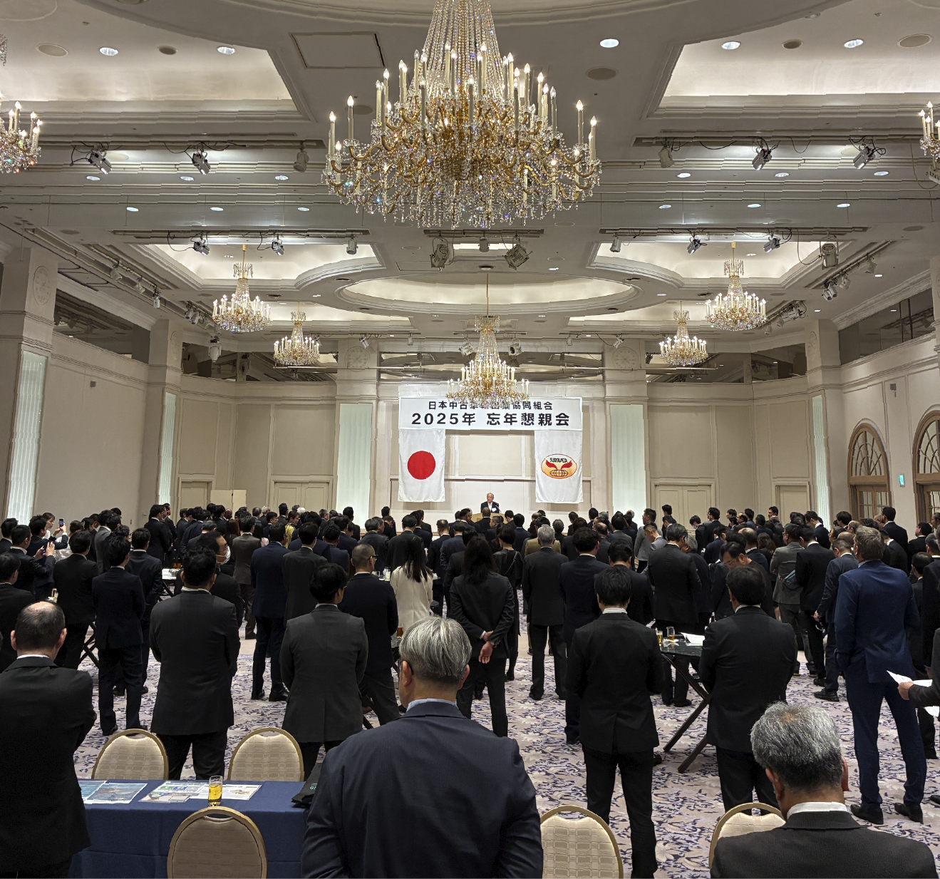 日本中古車輸出業協同組合(JUMVEA)の忘年会は、2025年11月25日に第一ホテル東京で開催され、250~300名の組合員が交流とビジネス開発のために集まりました。今年の新しい試みとして、JUMVEAは従来の忘年会に加えて商談デスクを導入し、アクレットのようなサービス提供者が業界のプロフェッショナルと直接交流できる貴重な機会を創出しました。