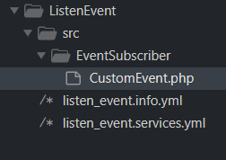 4 Create file CustomEvent.php ( \ListenEvent\src\EventSubscriber\CustomEvent.php )