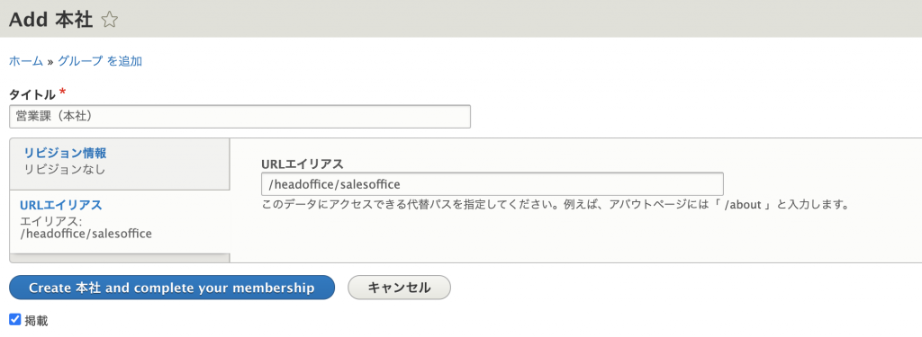下記のグループを追加します。各グループのURLも設定しておきます。