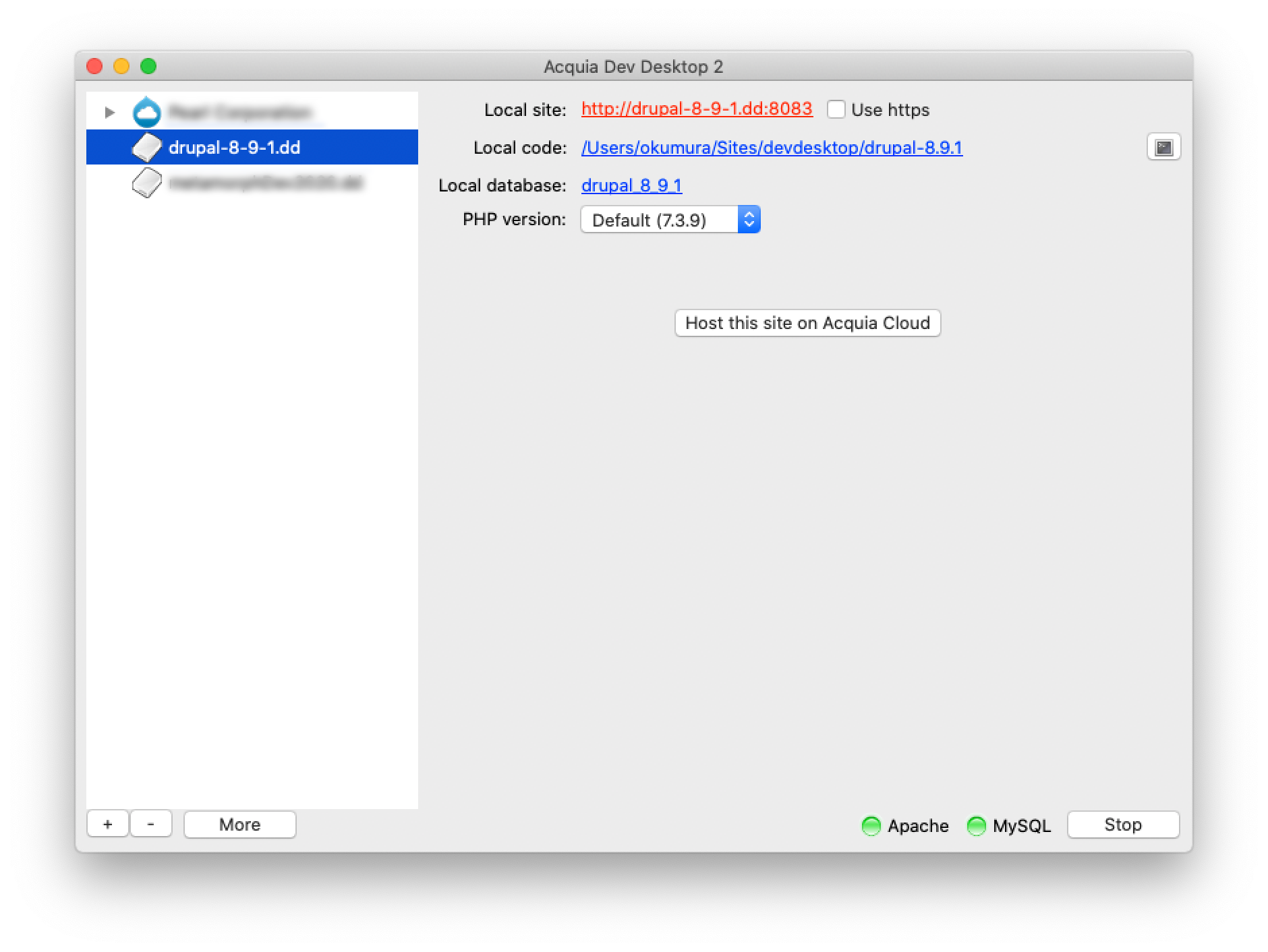 AcquiaCloudでホストされている既存のDrupalサイトからローカル環境を構築することができます。